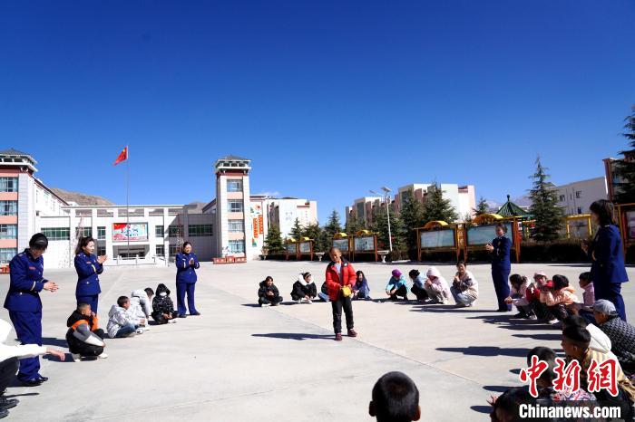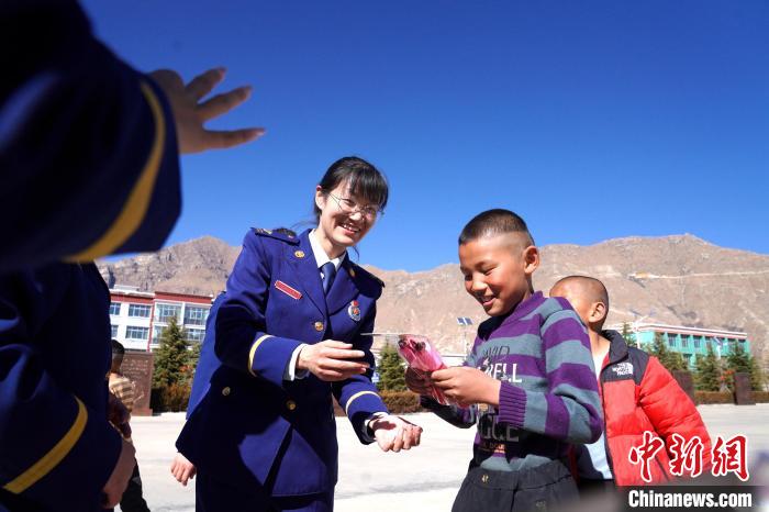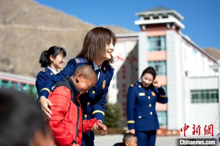 在活動中,志愿者們首先與孩子們進行了自我介紹,詳細了解孩子們的生活、學習情況。同時,帶著孩子們開展跳繩、丟沙包、短跑等互動活動。隨后,藏族歌手、總隊教育宣傳處助理員索朗德吉為孩子們演唱歌曲,在動聽的旋律中不時傳來孩子們的歡聲笑語,其樂融融的氛圍,更是感染著在場的每一個人。