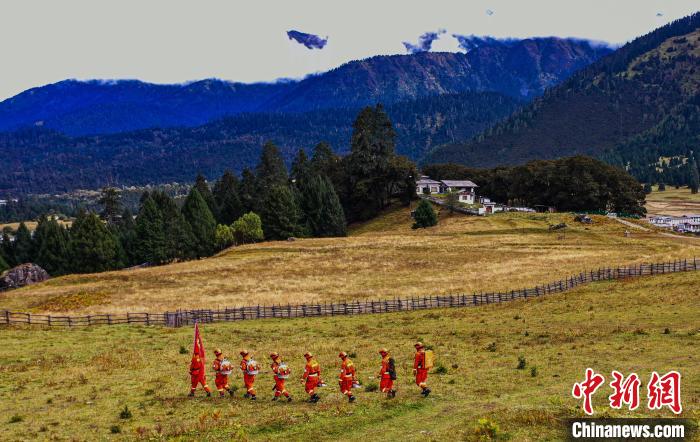 圖為森林消防隊員在魯朗國際小鎮景區巡護?!∥骼@拉翁 攝