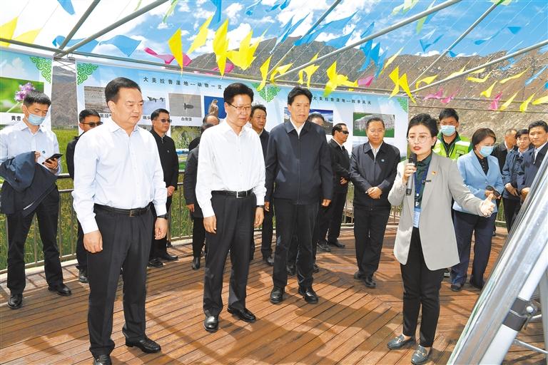 張春賢指出,黨的十八大以來,以習近平同志為核心的黨中央把生態文明建設納入中國特色社會主義建設總體布局,在推進生態文明建設實踐中,形成了習近平生態文明思想,推動我國生態環保事業實現長足進步,取得歷史性成就。西藏自治區深入學習貫徹習近平生態文明思想,認真貫徹落實習近平總書記關于西藏工作的重要指示和新時代黨的治藏方略,完整、準確、全面貫徹新發展理念,結合西藏實際,把生態環境保護作為頭等大事,采取項目化、載體化、清單化方式加以落實,各項舉措扎實有效,人大監督堅決有力,生態文明建設取得明顯成效,值得充分肯定。他強調,要持續深入貫徹落實習近平生態文明思想,聚焦黨中央關于生態文明建設重大部署,充分認識保護生態環境就是保護生產力、改善生態環境就是發展生產力,持續加強生態環境保護,不斷推動經濟社會發展全面綠色轉型,建設人與自然和諧共生的現代化,在推動青藏高原生態保護和可持續發展上不斷取得新成就。要持之以恒加大法律宣傳,引導企業、組織、公民增強環境意識、行使環境權利、履行環保義務,在全社會形成節約適度、綠色低碳、文明健康新風尚。要堅持問題導向,及時發現并解決環境保護法實施過程中存在的問題,讓法律制度的牙齒真正“咬合”起來,不斷提高生態環境質量。要不斷健全生態環境法律制度體系,加強生態環保地方性法規及規章標準等規范性文件的建設、修改和清理工作,增強法律體系的系統性、整體性、協同性。要壓實各方法律責任,加快形成政府、企業、公眾共同參與、各負其責的法律落實體系,提高基層執法能力,優化執法方式,著力推動法律有效實施,深入推進綠色發展和生態文明建設。
