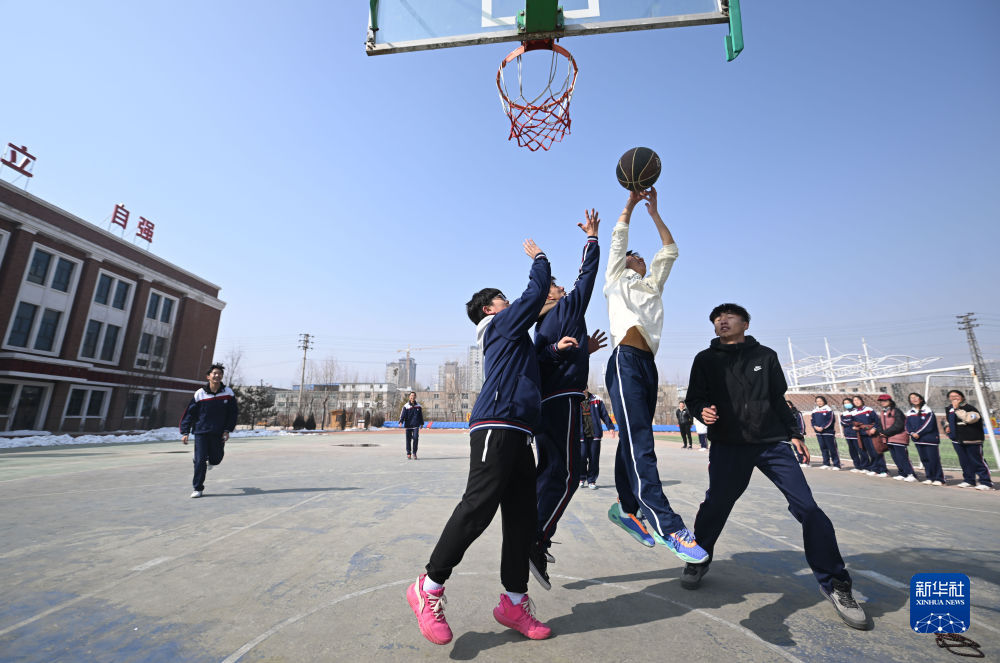 2月23日,西寧果洛中學學生在體育課上打籃球。新華社記者 張龍 攝