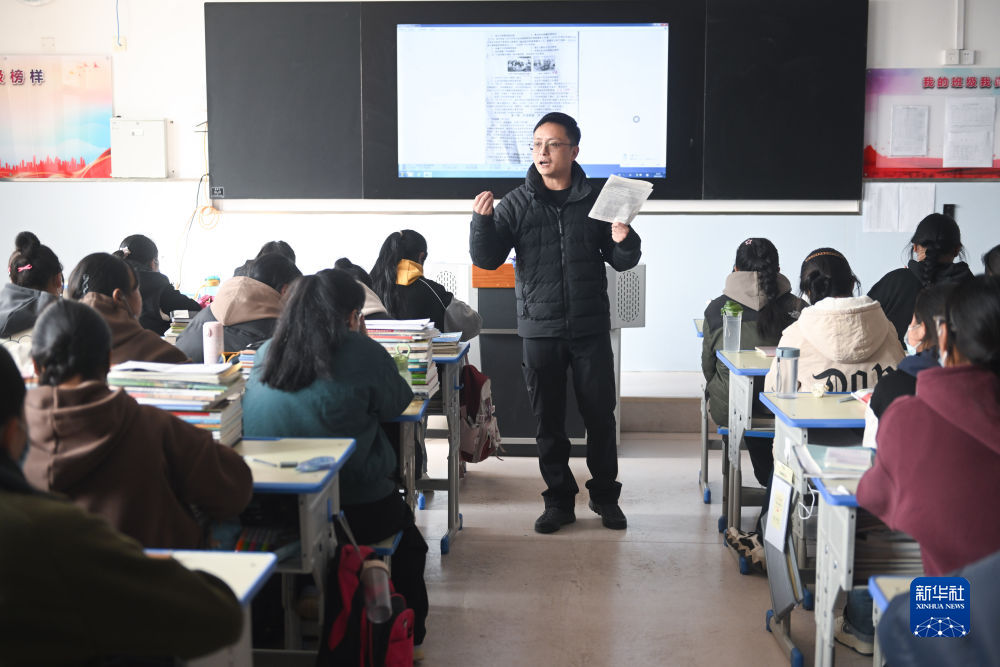 2月23日,上海援青教師鐘祖華在給學生上課。新華社記者 張龍 攝