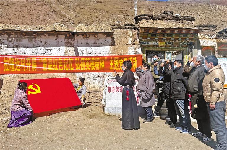圖為巴青縣拉隆達(dá)村黨員在“草原英雄布德故居”前重溫入黨誓詞。記者 薛瑩 益西加措 攝