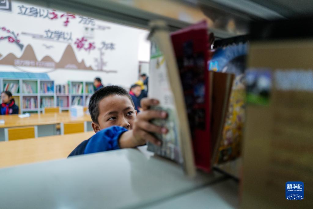 3月31日,下察隅鎮的孩子們在開放書吧閱讀書籍。新華社記者 王澤昊 攝