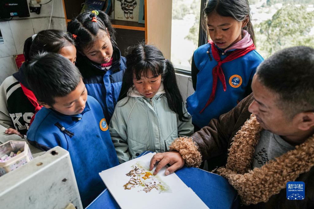 3月31日,下察隅鎮中心小學新春老師(右一)帶領僜人學生閱讀繪本。新華社記者 洛卓嘉措 攝