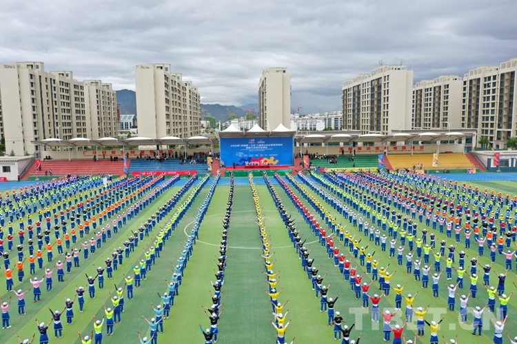 圖為2023年“奔跑吧 少年”兒童青少年主題健身活動西藏分會場啟動儀式現場 攝影:旦曲
