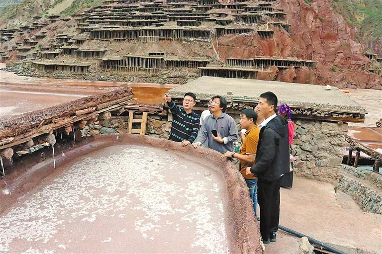 圖為芒康古鹽田考察團調研加達鹽田。通訊員 劉哲含 攝