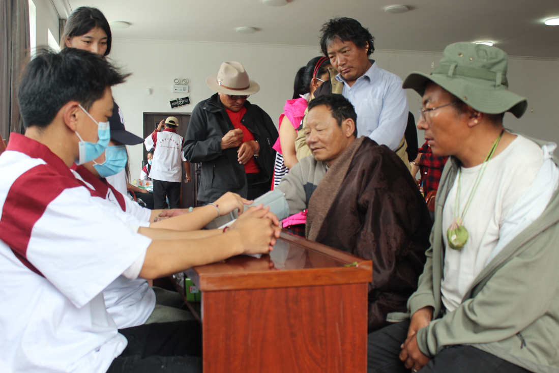 活動期間,“民族團結返鄉實踐團”師生先后到森布日高海拔生態搬遷安置點和那曲駐拉薩辦事處等,與西藏防治艾滋病協會工作人員共同開展“中醫藥健康進西藏 民族團結我先行”的愛心醫療志愿服務,為當地老百姓和老干部開展針對性的中醫藥知識宣講,還為大家測血壓、血糖,共同體驗中醫藥花茶及香囊的制作過程,免費發放藥物等。