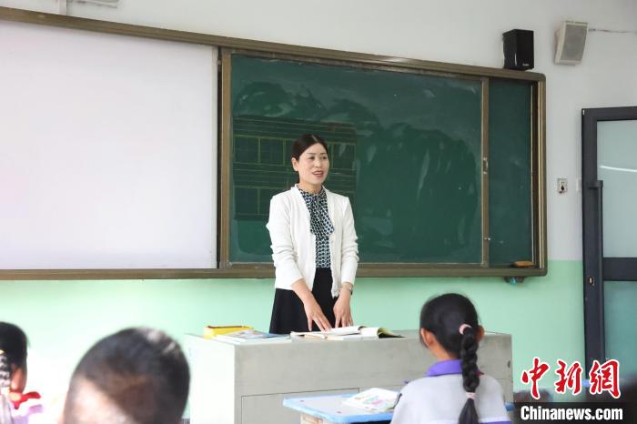 圖為張雪蓮在西寧市湟中區多巴鎮丹麻寺小學的教室內上課。張添福 攝