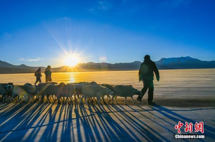 西藏普姆雍措冰湖羊群轉場 牧民環保意識提升