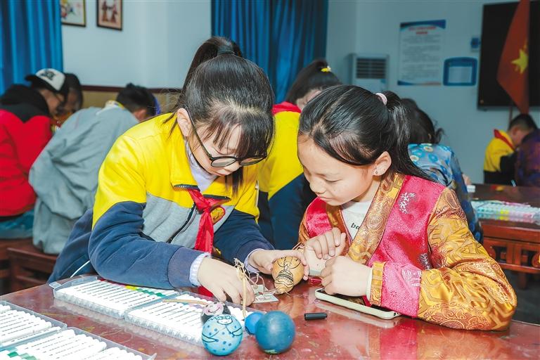 圖為山南黃山兩地學生在課堂上互動協作,共同完成手工作業。記者 武沛濤 攝