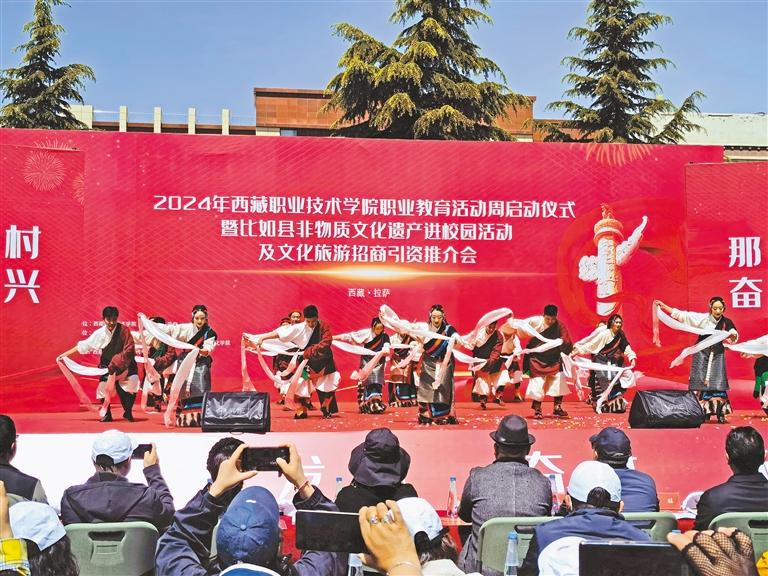日前,2024年西藏職業技術學院職業教育活動周在拉薩啟動。那曲市比如縣非物質文化遺產走進校園,激發了學生和老師對傳統文化濃厚的興趣。