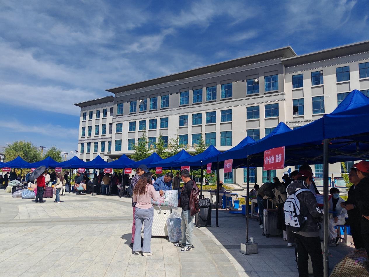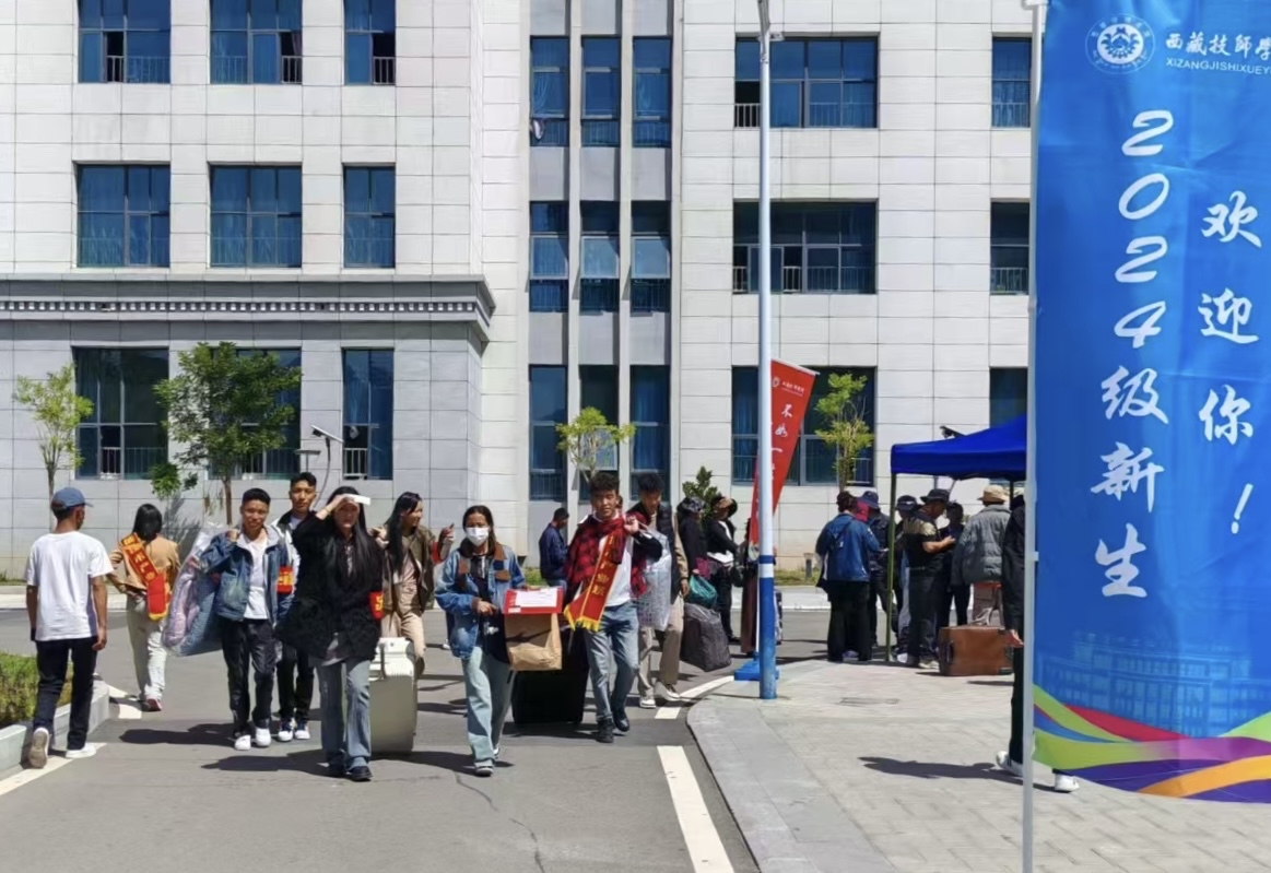 在西藏技師學院校園里,隨處可見“歡迎新同學”的標語和展板,校園內(nèi)還設置了立體合影展臺供學生留影,營造出了濃濃的暖心氛圍。學生和家長們帶著大包小包的行李,秩序井然地進入校園,找到所錄取專業(yè)報到點前完成入學手續(xù),各班班主任都等候在報到點,耐心地回答學生們的疑問、專業(yè)學習情況、體檢和助學金的申請等問題。