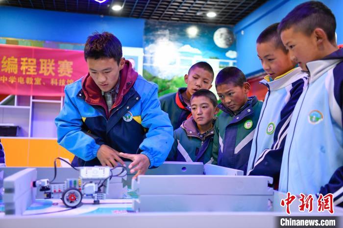 10月25日,在西藏自治區那曲市聶榮縣中學,學生展示計算機編程作品。中新社記者 貢嘎來松 攝