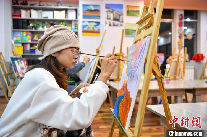 11月28日,在西藏自治區拉薩市青少年活動中心,夜校學員在上美術課。據悉,首期夜校共招收180名青年,設立了美術、花藝、舞蹈、服裝穿搭、職場解壓等8門課程。吸引年輕人利用業余時間前來“充電賦能”,放松身心。中新社記者 貢嘎來松 攝