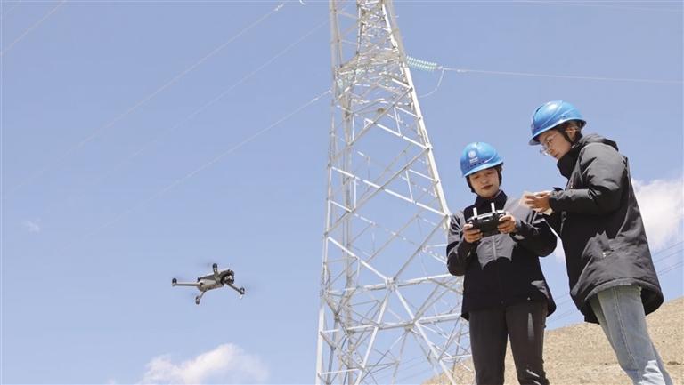 隊員們在用無人機進行巡檢。 圖由國網西藏電力有限公司提供