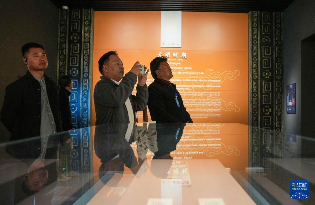 4月17日,西藏全區博物館館長培訓班的學員在西藏博物館現場交流學習。新華社記者 晉美多吉 攝