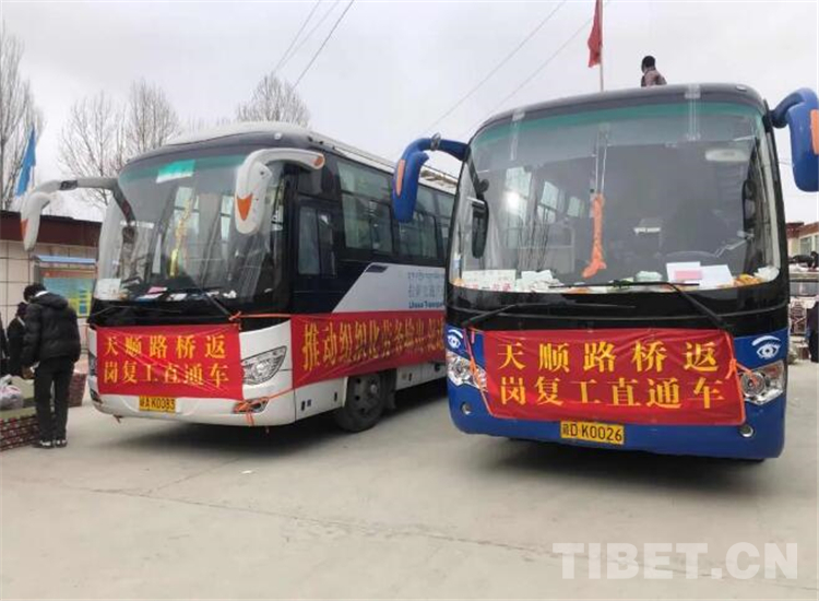 3月14日,西藏自治區日喀則市江孜縣首批115名外出務工人員在卡堆鄉集合,統一出發。在疫情防控特殊時期,江孜縣對首批前往天順路橋建設項目組施工地的115名務工人員,統一安排9輛運輸車開啟“一站式”免費直達運輸服務。衛生防疫工作人員對專送車輛提前進行消毒,并為務工人員進行身體健康檢查,統一配發防護口罩。