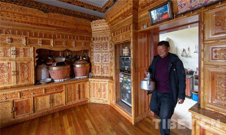 來到村民仁青家里,仁青正在煤氣灶上燒水。“平時自己在工地上開裝載機,現在家庭年收入10多萬元。”談起現在的生活仁青開興地說,以前只有過年才可能吃到的大米,現在已經是每家每戶的家庭便飯。