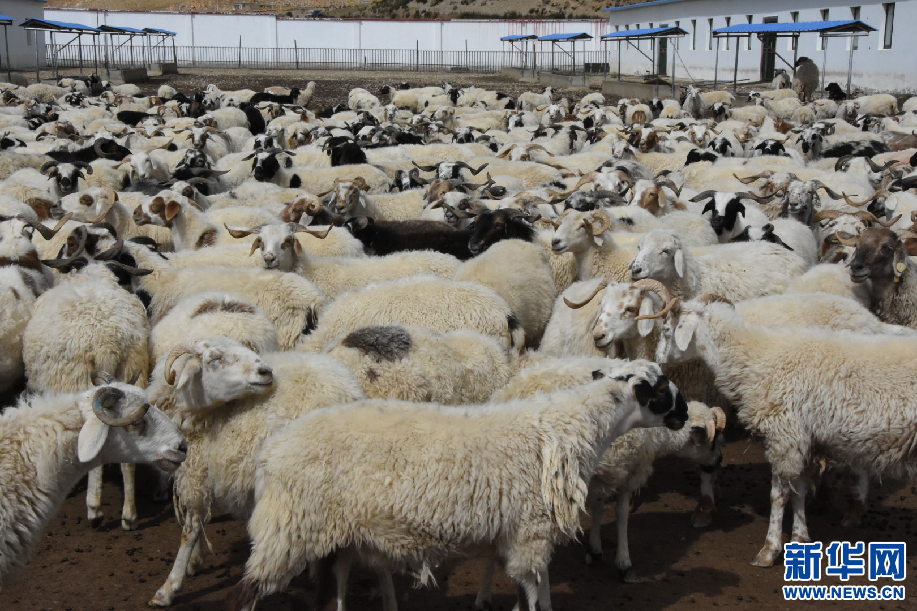 9月14日,亞東縣堆納鄉古汝村崗巴羊生態養殖合作社里的羊群。新華網 張宸 攝