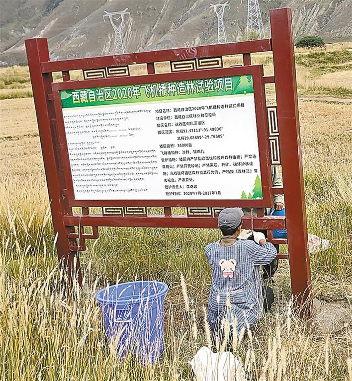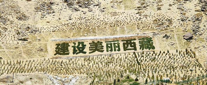 在柳梧大橋附近公路旁的一座山上,一排由綠樹組成的“建設美麗西藏”幾個大字讓人眼前一亮。“這就是我們公司設計完成的,花費了我們很多心血,也因為這一單業務的成功,我們公司在市場上得到了認可。”格桑塔杰指著幾個大字高興地說。