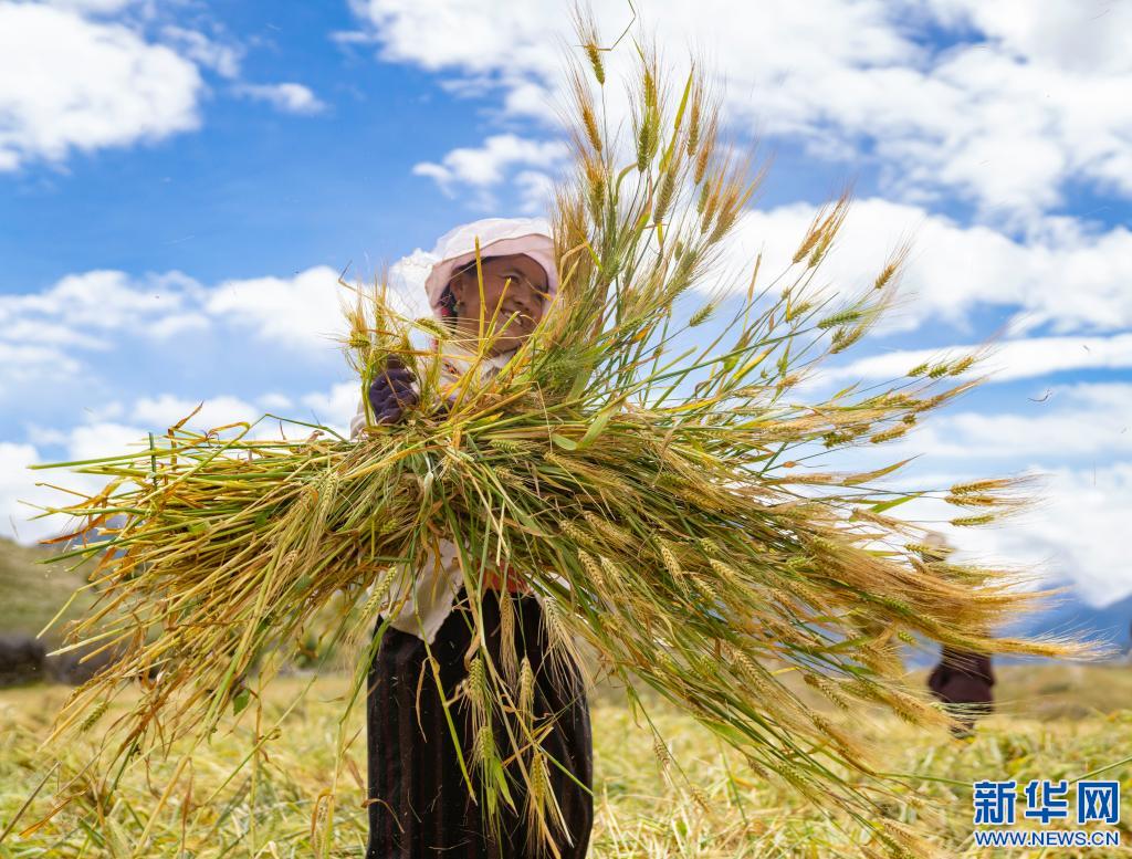 西藏昌都市八宿縣然烏鎮康沙村村民在收青稞(2020年9月10日攝)。新華社記者 普布扎西 攝