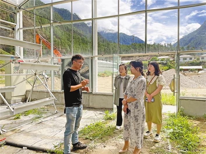 圖為林芝市人社局宣講組在高校畢業生創辦的西藏隅農設施農業有限責任公司開展政策宣講。記者 張猛 通訊員 呼小娜 攝