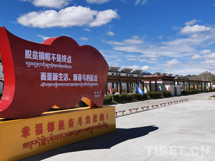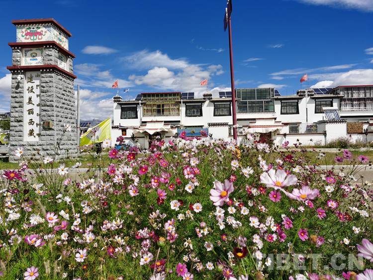 中國西藏網訊 西藏自治區日喀則市桑珠孜區江當鄉郭加新村,坐落在通往日喀則和平機場的拉日高速旁,一個鮮花盛開的搬遷村莊,錯落有致的藏式二層小樓,富有民族特色的庭院廣場,寬敞、整潔、一片祥和的安寧景象。