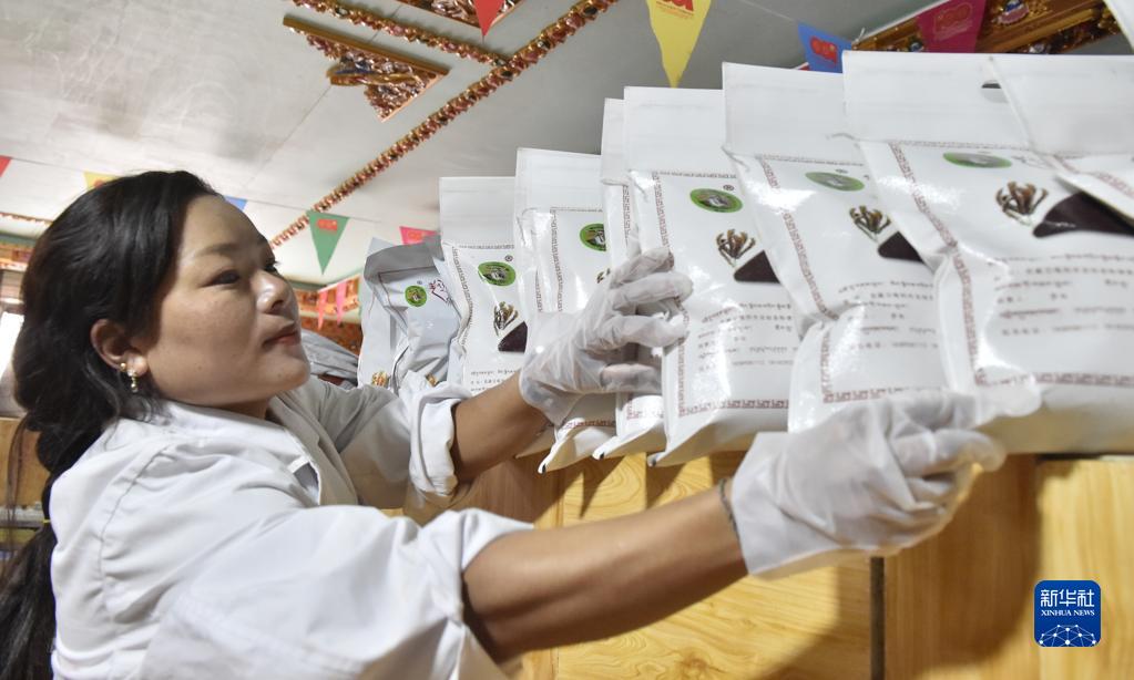 9月15日,西藏定結縣陳塘鎮居民久松在打包雞爪谷糌粑。新華社發(索朗羅布 攝)