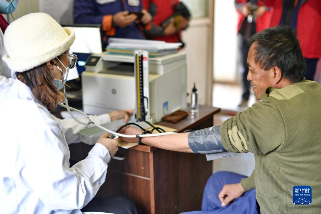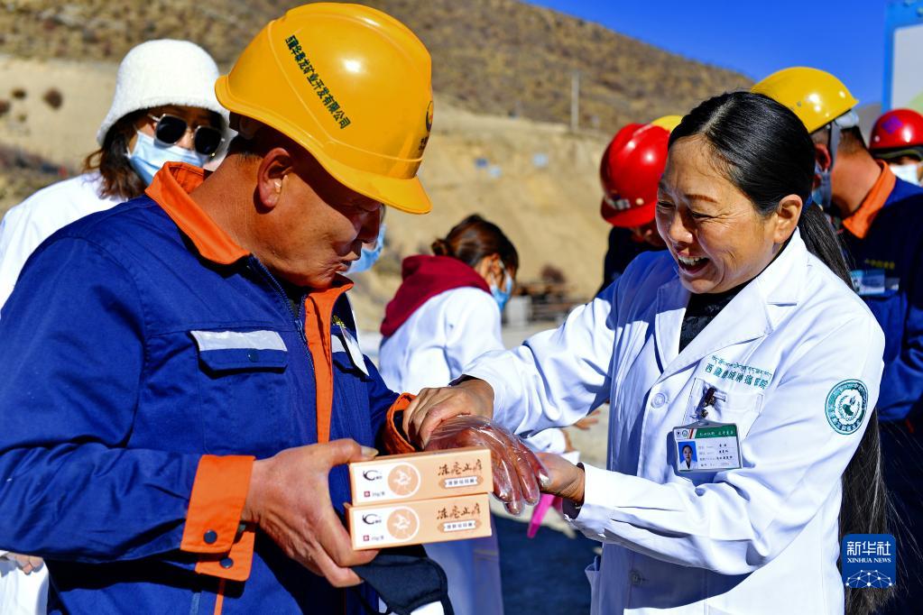 當(dāng)日,西藏康城腫瘤醫(yī)院的醫(yī)護(hù)人員來到拉薩市墨竹工卡縣,為工地工人義診,為他們送去冬天里的溫暖。
