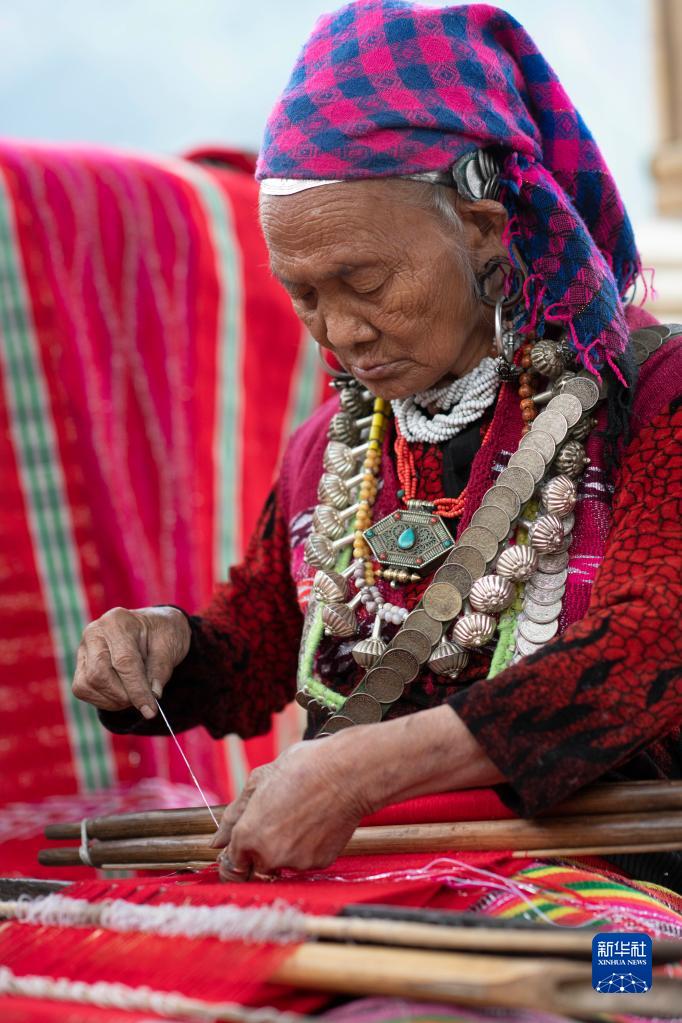 今年72歲的本央老人,是僜人服飾制作技藝西藏自治區級非遺傳承人。在西藏林芝市察隅縣沙瓊村,老人身著傳統的僜人服飾,在自家的涼亭里編織布料。