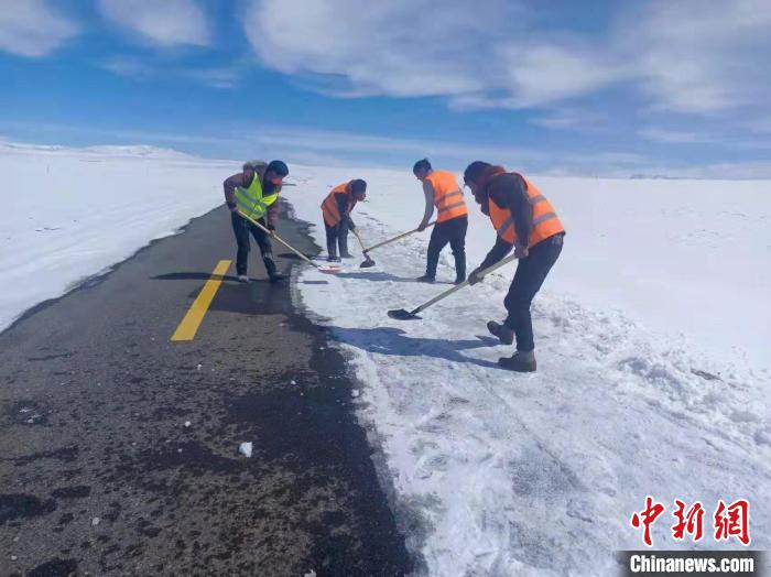 圖為西藏一線交通運輸部門組織護路員對農(nóng)村公路開展除雪保暢。 西藏自治區(qū)交通運輸廳供圖