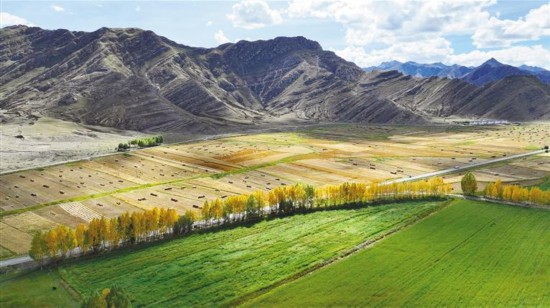 圖為9月23日,日喀則市桑珠孜區曲美鄉收割完的青稞地。