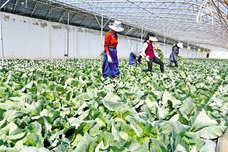 某農業科技公司的員工在大棚里工作。 記者 旦增蘭澤 攝