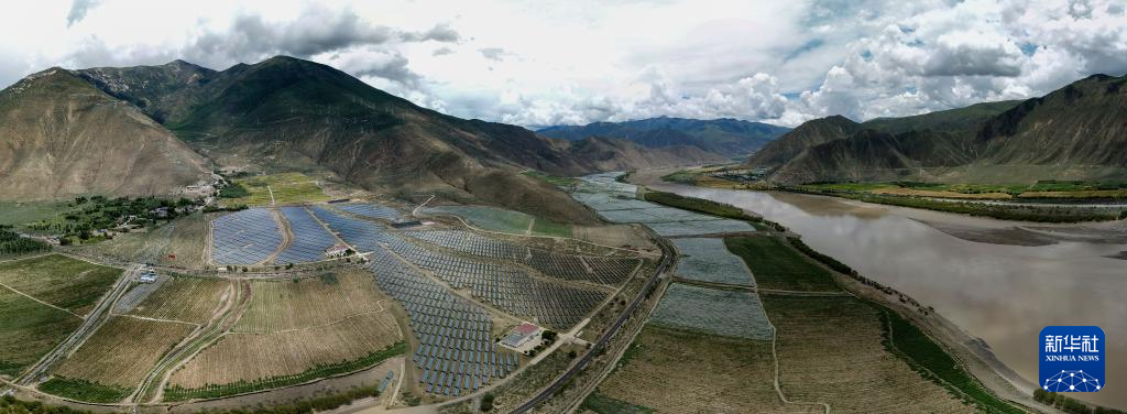 鳥瞰桑日縣葡萄種植基地(7月26日攝,無人機照片)。新華社記者 姜帆 攝