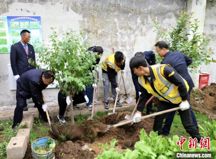圖為拉薩基礎設施段黨員代表在援建溫室大棚植樹。 馬生明 攝
