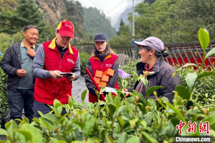 10月7日,國網山南供電公司服務隊在勒鄉茶田間開展供電宣傳工作。多吉次仁 攝