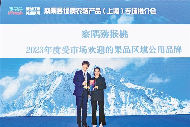 察隅獼猴桃獲得第十六屆iFresh亞洲果蔬產(chǎn)業(yè)博覽會“2023年度受市場歡迎的果品區(qū)域公用品牌”的榮譽(yù)。 圖片由記者 謝筱純 王珊 攝