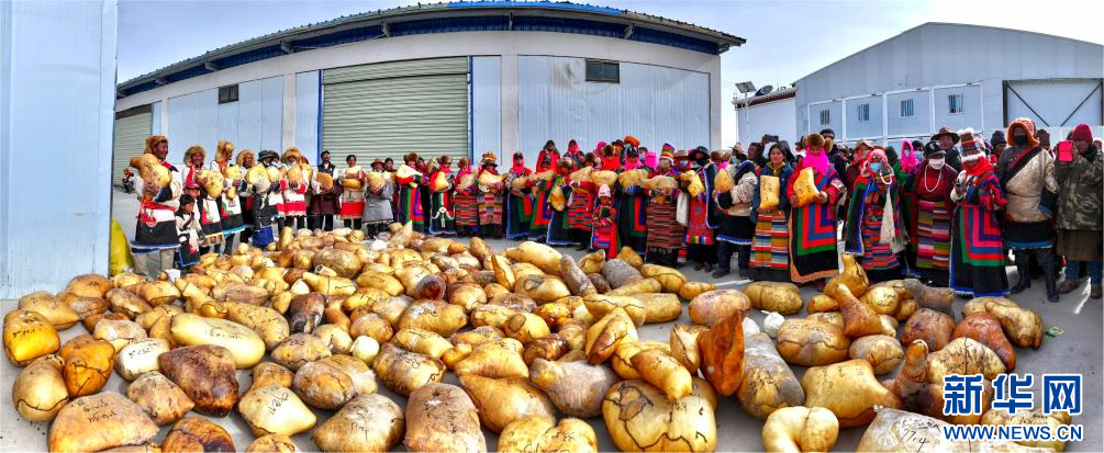 合作社為社員發放畜產品(11月28日攝)。新華社發(索朗仁青 攝)
