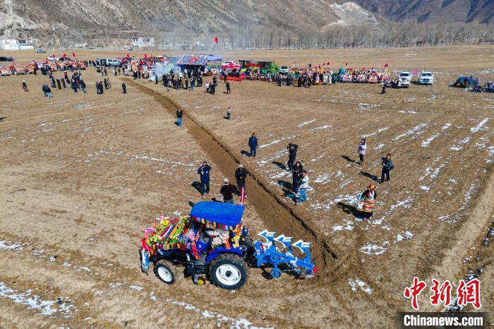 2023年3月16日,西藏拉薩林周縣農(nóng)牧民舉行隆重的春耕開耕儀式。(無人機拍攝)中新社記者 江飛波 攝