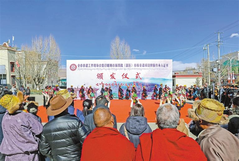 近日,日喀則市非遺工作現場會暨日喀則市第四批(縣區)市級非遺項目牌匾傳承人證書頒發儀式在拉孜縣召開,現場頒發了第四批非物質文化遺產代表性項目牌匾、第四批非物質文化遺產代表性傳承人證書、日喀則市級非遺旅游景區牌匾。