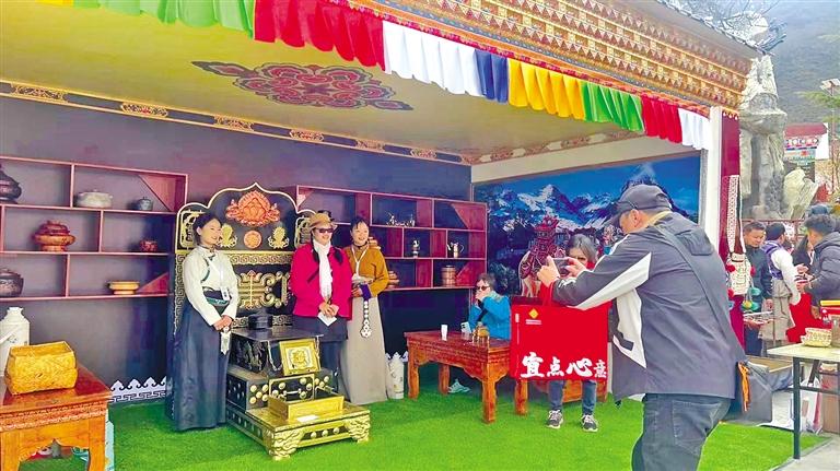 游客在“次仁的家藏式體驗館”區域拍照打卡集章。