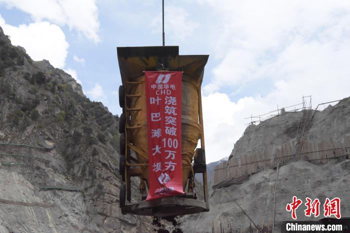 葉巴灘水電站大壩混凝土澆筑量突破100萬立方米。華電金沙江上游開發有限公司葉巴灘分公司供圖
