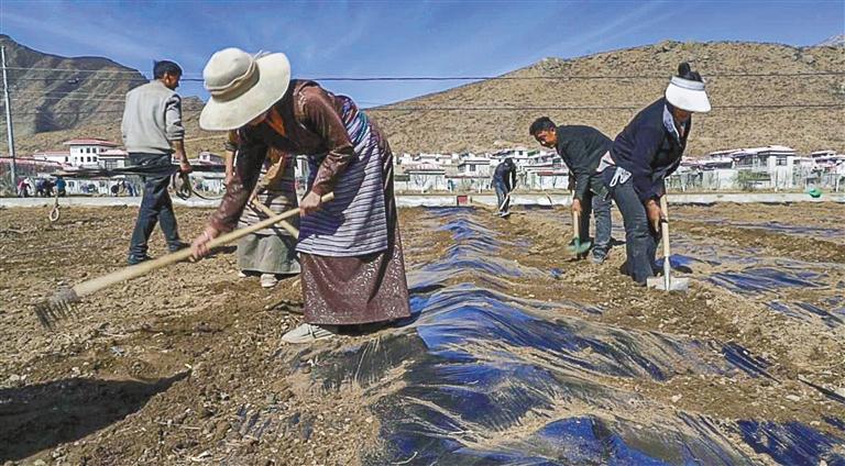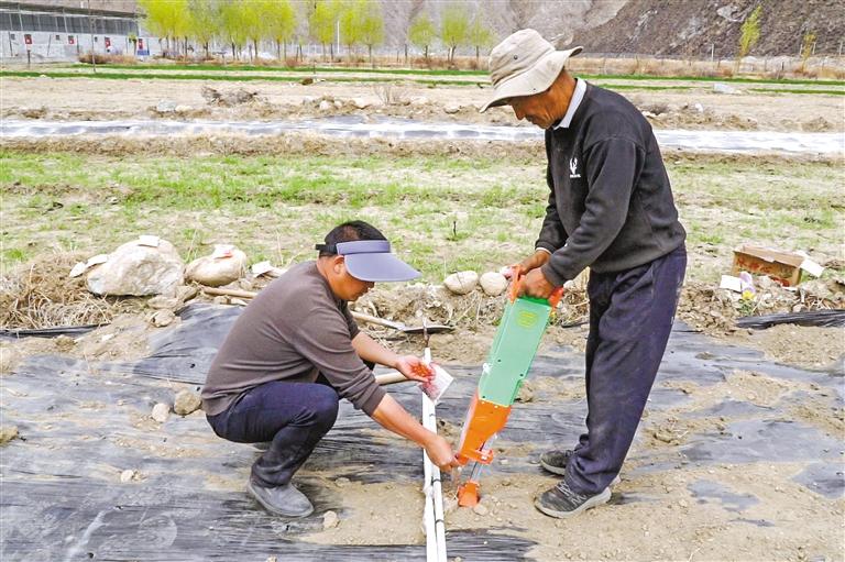 近日,記者在山南市加查縣共康村看到,平坦的農田里壟溝成行,農民揮鍬勞作,翻地、撒種、覆膜,一派忙碌的生產景象。加查縣招商引資重點項目——萬畝高原玉米制種項目正在田間地頭開始規模化試種作業。