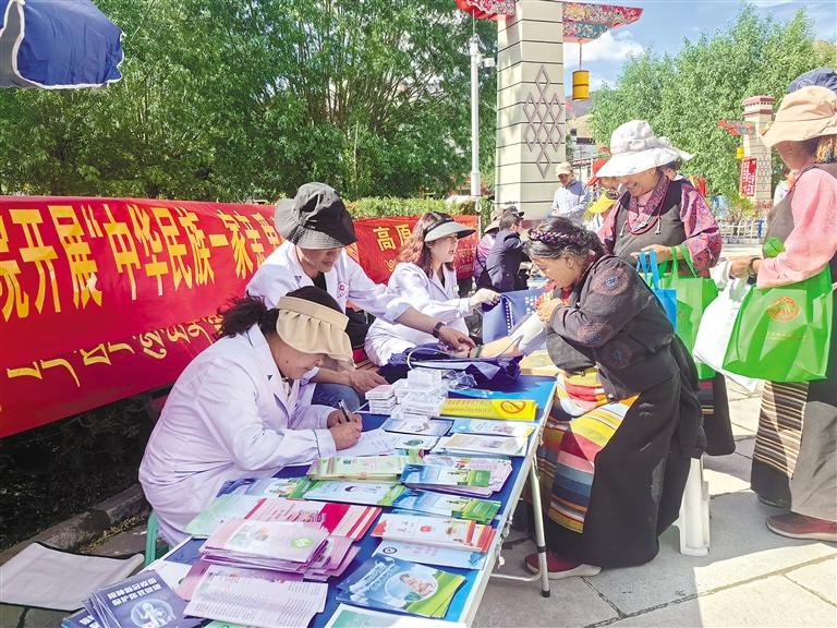 圖為仁布縣衛(wèi)健委開展以“中華民族一家親·愛(ài)心義診送萬(wàn)家”為主題的免費(fèi)義診活動(dòng)。