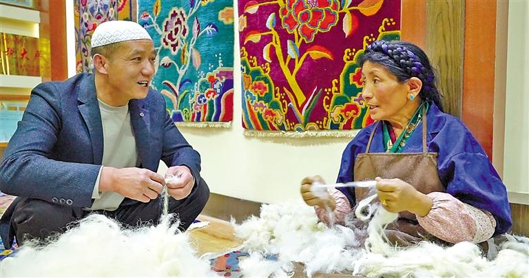 圖為江孜縣組織開展民族文化、民族手工業(yè)、民族飲食、民族服裝等沉浸式體驗(yàn)活動(dòng)。這是回族群眾在體驗(yàn)傳統(tǒng)服裝制作工序。