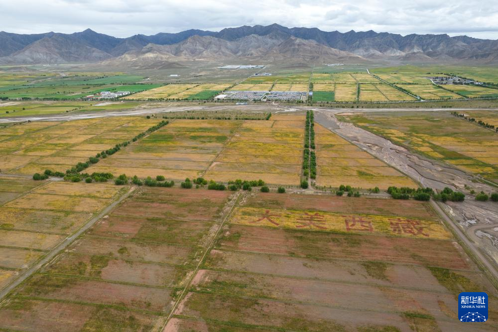 這是在西藏日喀則市薩迦縣扯休鄉拍攝的高原藜麥種植基地(無人機照片,9月4日攝)。新華社記者 孫瑞博 攝