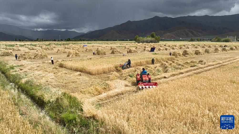 收獲季節,享有“西藏糧倉”美譽的日喀則田野一片金黃。在日喀則市白朗縣巴扎鄉,農民采用機械化、半機械化收割方式,高效收獲成熟的青稞。