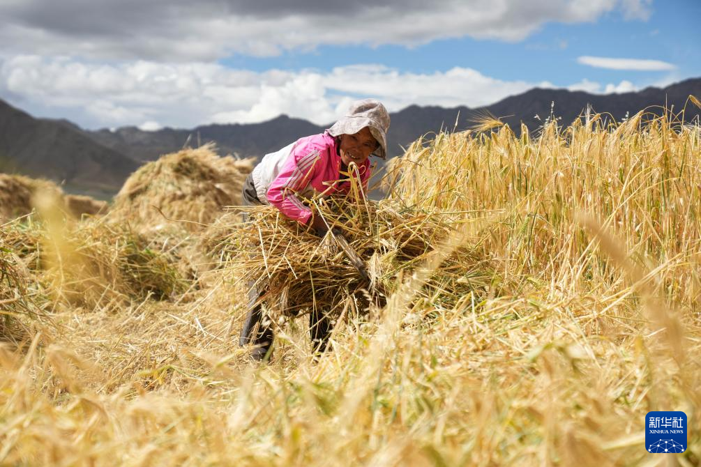 9月10日,西藏日喀則市白朗縣巴扎鄉農民在收獲青稞。新華社記者 晉美多吉 攝