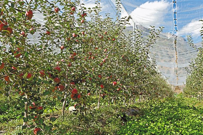 寬行密植有利于機械化生產,多功能網室減免了套袋的人工和時間成本,水肥一體化灌溉系統能有效節水節肥……標準化種植的基地里,充滿了現代科技感。據介紹,目前,增巴村蘋果種植基地畝產量在5000斤左右,明年進入豐產期后,能達到每畝8000斤的產量。