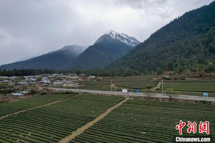 圖為12月13日,西藏林芝波密縣易貢雪山、茶田風光。(無人機畫面)記者 江飛波 攝